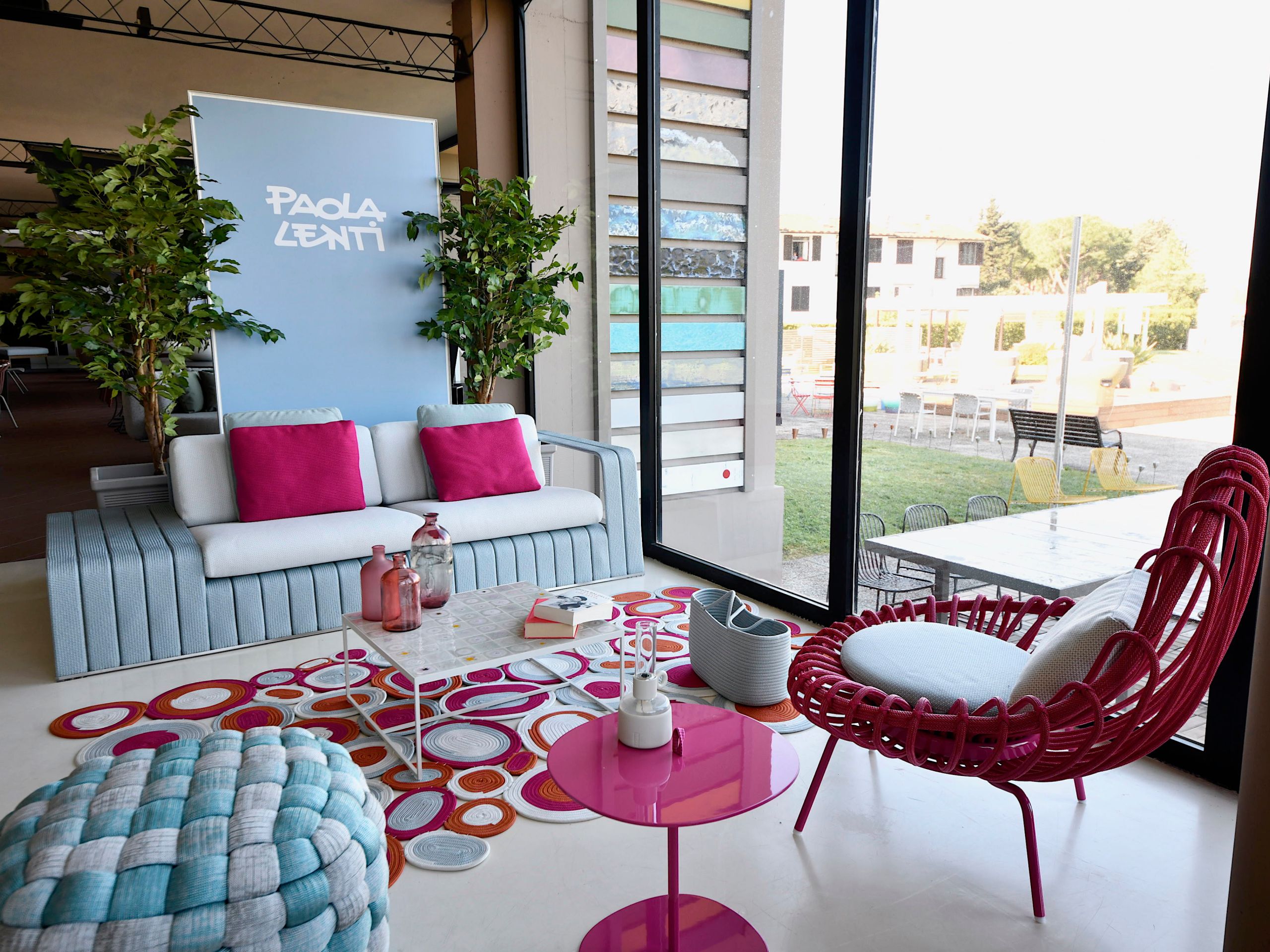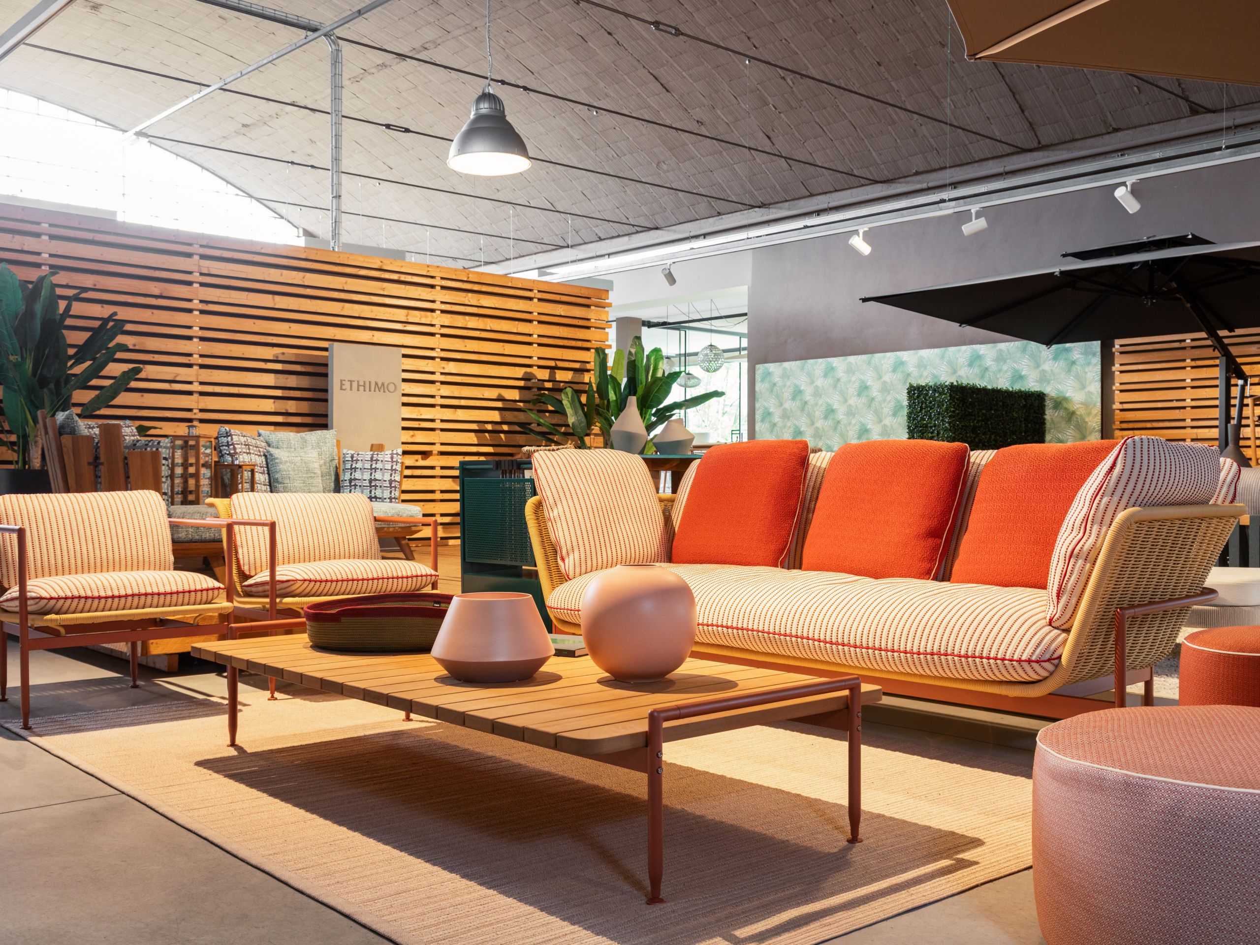 Una selezione firmata Paola Lenti per arredare l’outdoor con stile, comfort e ricercatezza. Protagonista il divano Frame, dal design essenziale, accompagnato dalla morbida poltrona Giunco e dal cuscino poggiareni, pensato per un comfort su misura. Completano la proposta il pratico pouf Tobit e i tavolini Bloom e Strap, dalle forme leggere e materiali resistenti. A definire lo spazio, il raffinato tappeto Ellissi. In chiusura, un tocco distintivo: la borsa ovale grande, accessorio iconico che richiama l’estetica e i materiali della collezione. Un insieme armonico che unisce funzionalità, colore e design, nel segno inconfondibile di Paola Lenti.